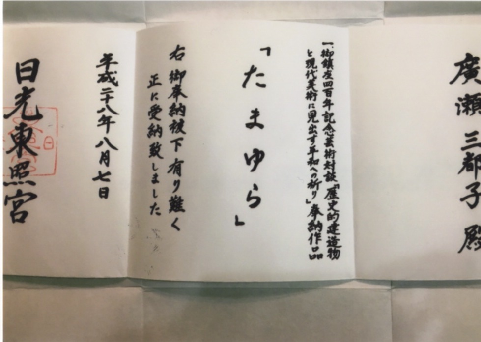 | 2016 | タイ王国殿下在位70周年祝賀事業 教育美術展「子どもたちのアジア美術ASEAN+2」出展 モンコン・チャラーム王子賞「WAC認定」受賞 パヤタイ・パレス宮殿「タイ国王ラーマ5世建設宮殿」収蔵 日光東照宮御鎮座400年俸祝記念「天下泰平祈願日本芸術奉納~玉響の祈り」作品奉納 作家として依頼作品「たまゆらのりんご」を奉納 指定図書「bun・Ten」に記載図書 武蔵野美術大学校友会支部関西展出展 国際美術文化功労賞 アート ワールド インターナショナル贈 12月出版 配布先 各国大使館ニューヨーク美術館 ロンドンナショナルギャラリー ベルサイユ宮殿 ルーブル美術館 オルセー美術館 ベルギー王立美術館 エルミタージュ美術館 マザーテレサ病院 トヨタ自動車各自動車 ブリジストン 村田製作所 三越伊勢丹 各図書館 ギャラリー各上場企業 各国王宮 第3回改組日展「秋風に立つ」入選 全国巡回展示選抜 ザ・シンフォニーホール新たに二点収穫展示決まる「りんごの夢」「秋風に立つ」 金谷美術館コンクール2016「漂白の想い」 特選 RBA 英国王立美術家協会(RBA)メンバー選出 |