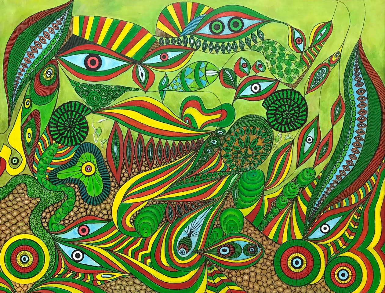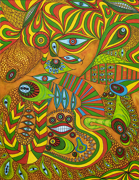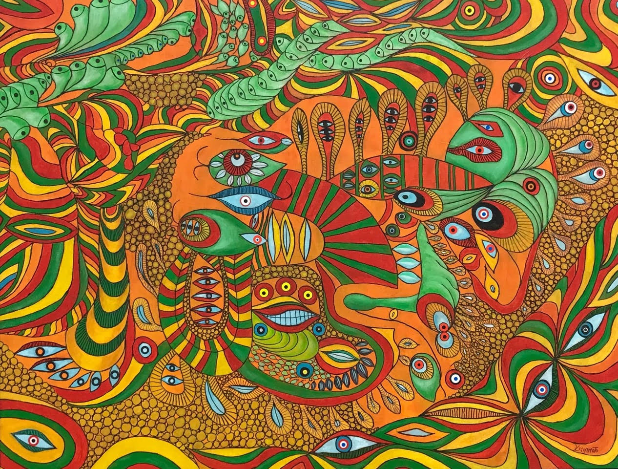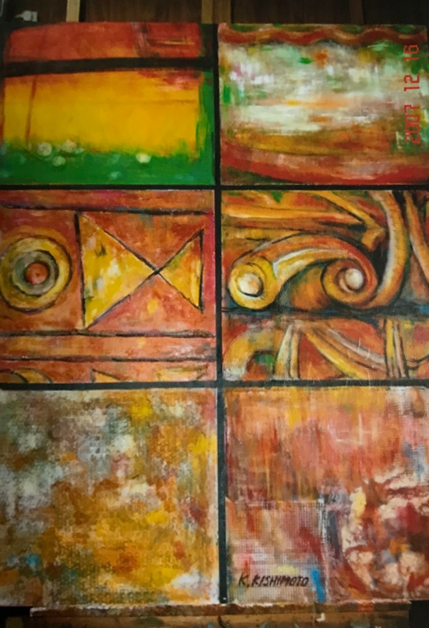それで無意識のうちにこれに代わるものとして人間が生み出し、織りなす美と詩情を画布の上に表現しているであろうが、自ずと筆が走るという不思議な体験をして、健聴者の味わう音の世界とはこうもあろうかと感じた。