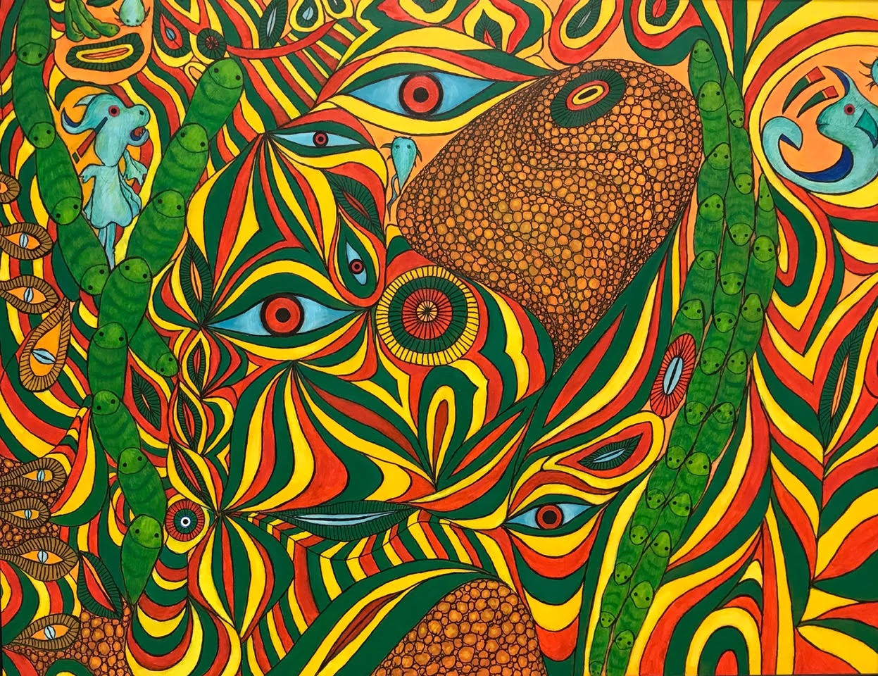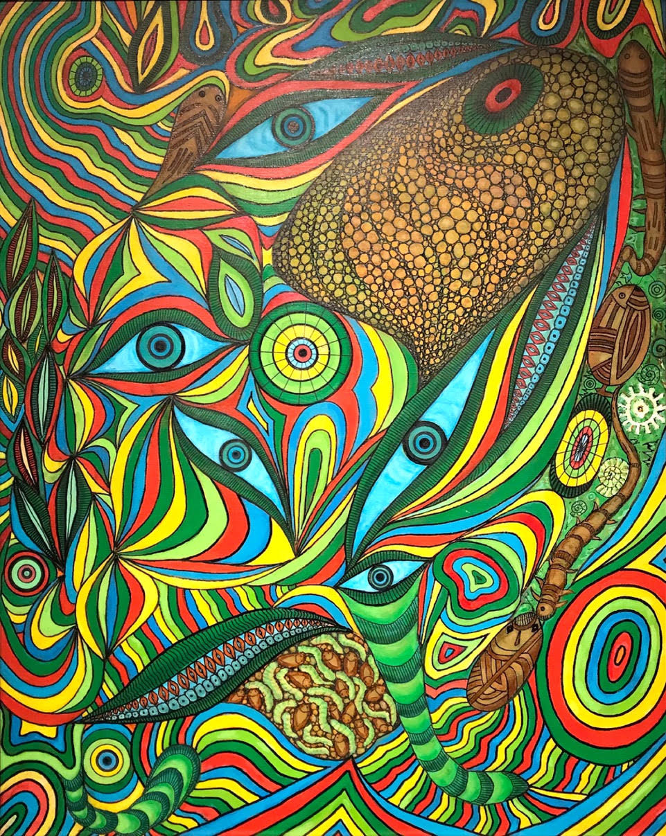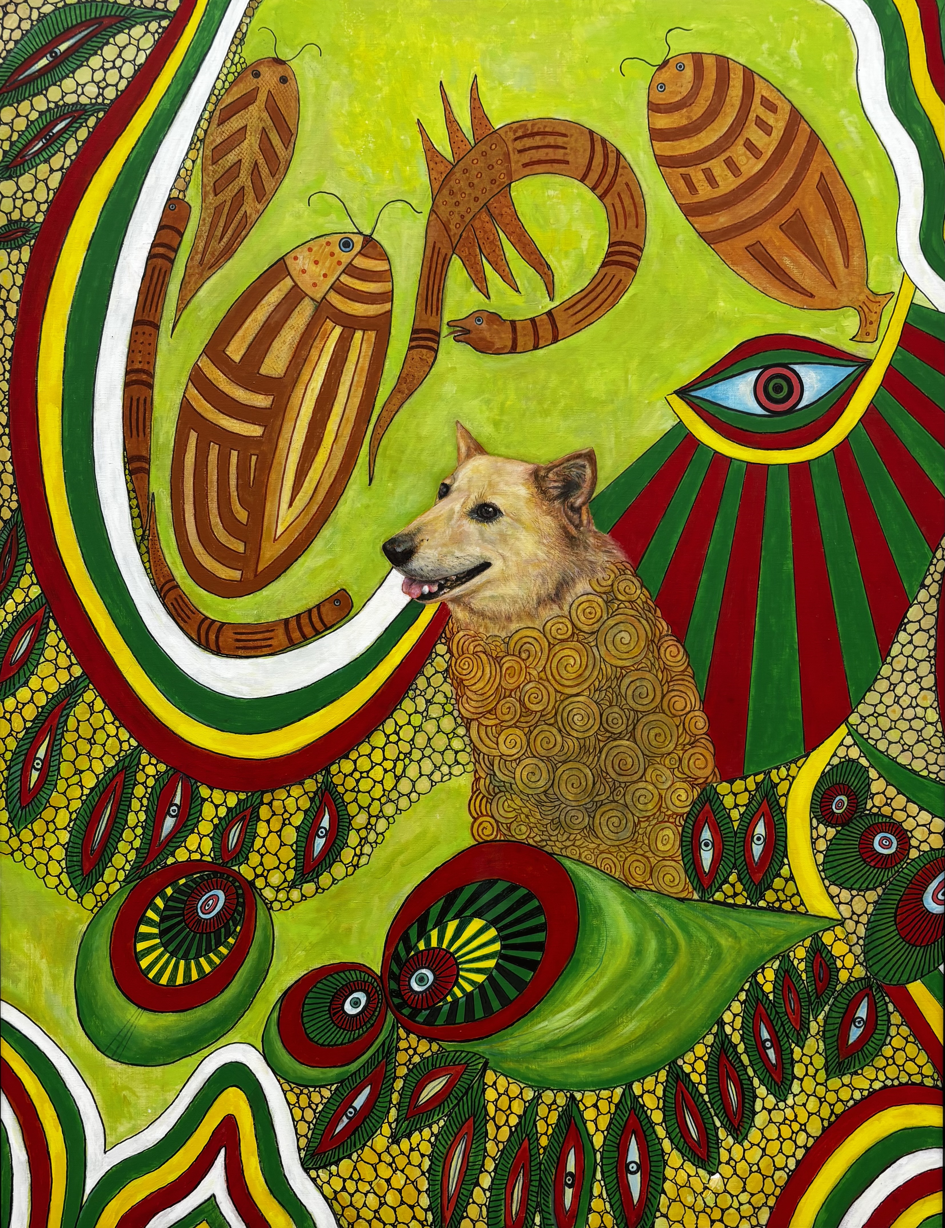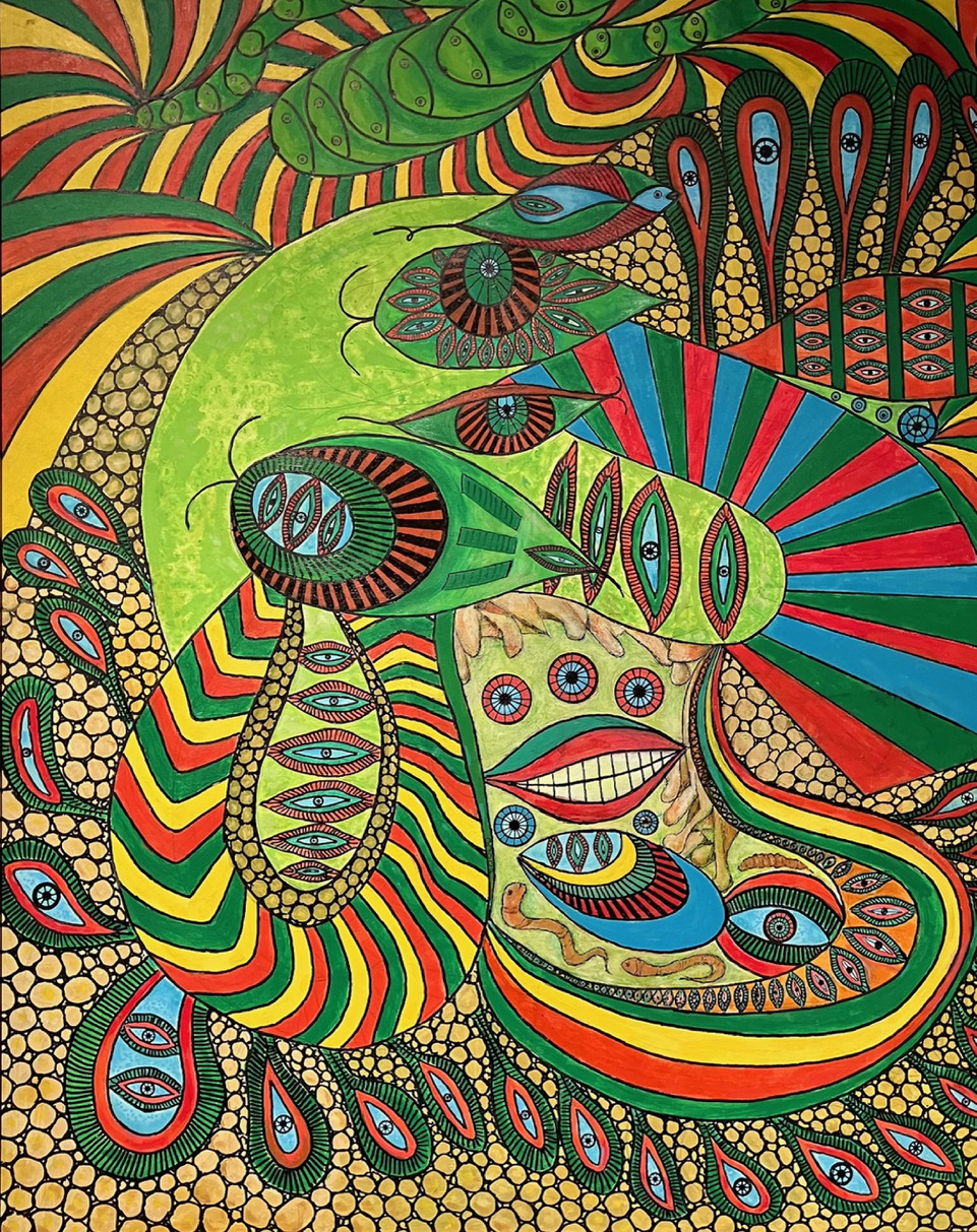それで無意識のうちにこれに代わるものとして人間が生み出し、織りなす美と詩情を画布の上に表現しているであろうが、自ずと筆が走るという不思議な体験をして、健聴者の味わう音の世界とはこうもあろうかと感じた。