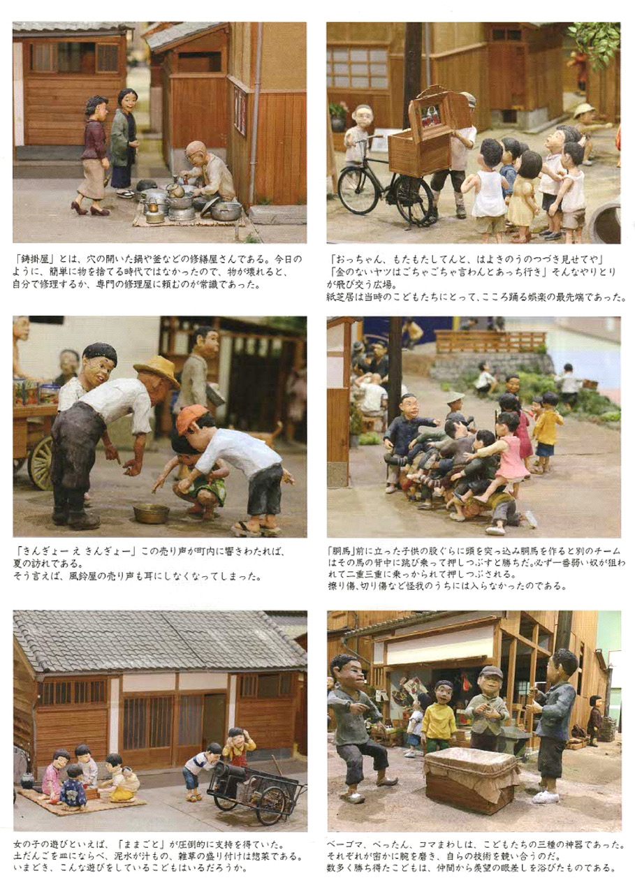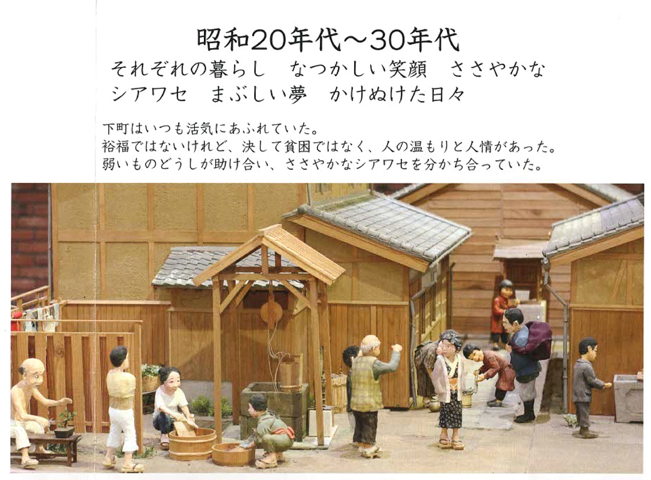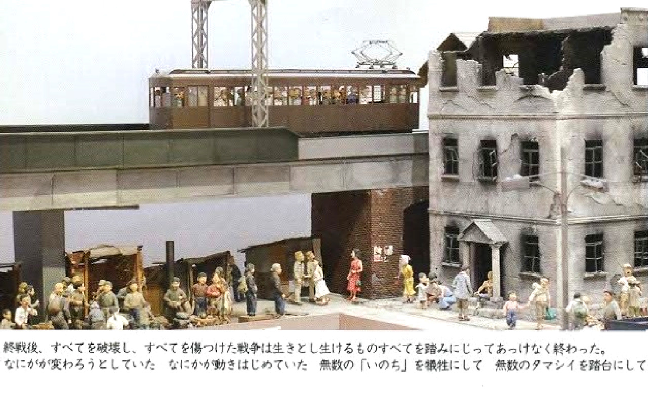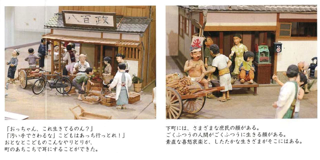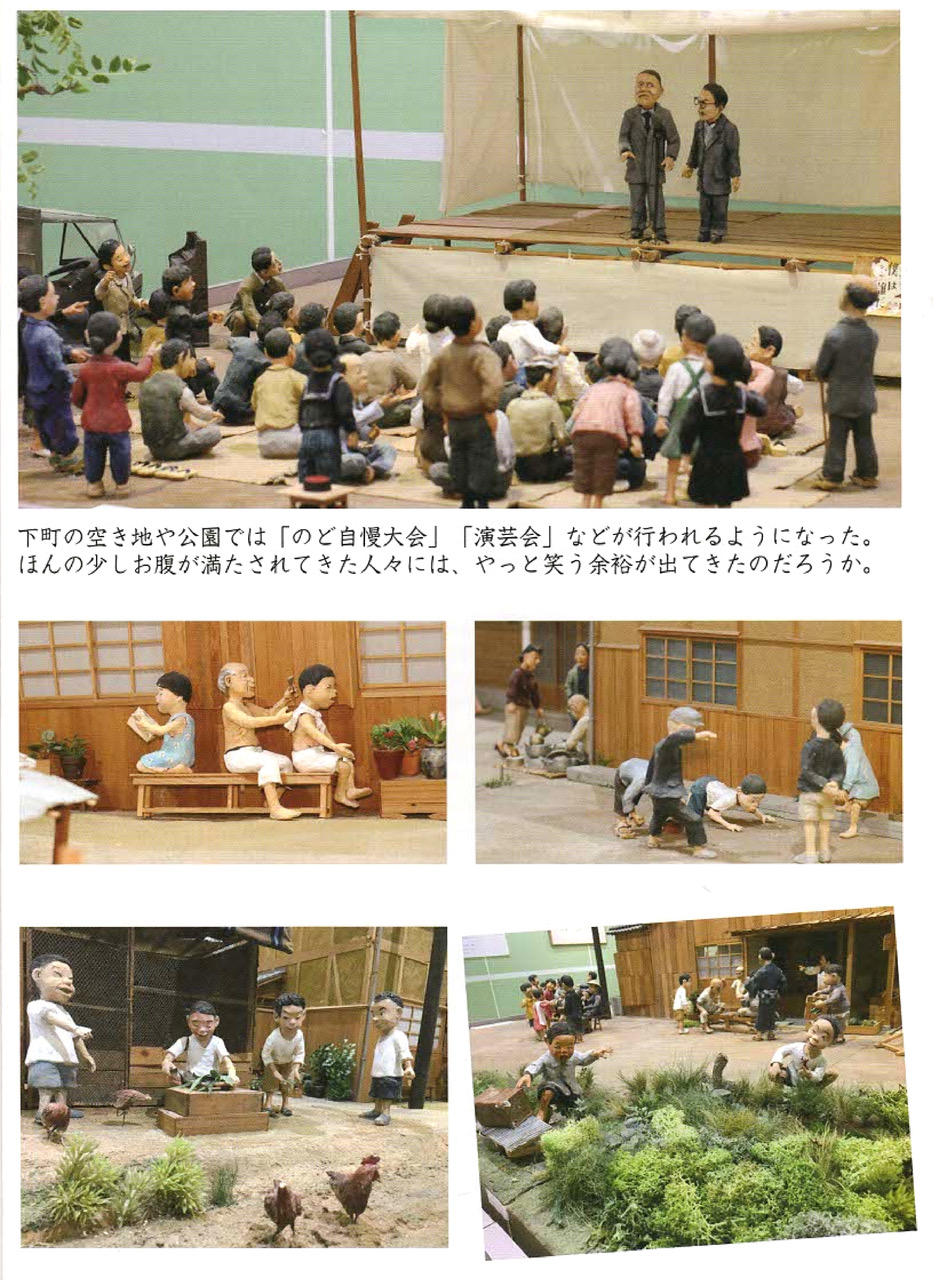 夫のジオラマは、当時の家屋や日用品なども細部までこだわって再現しており、戦後、 希望を失わずたくましく生き抜いた人々の生き生きとした姿は今にも動き出しそうなほど魅力に溢れています。