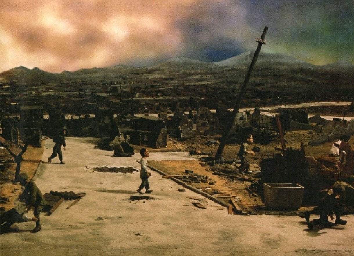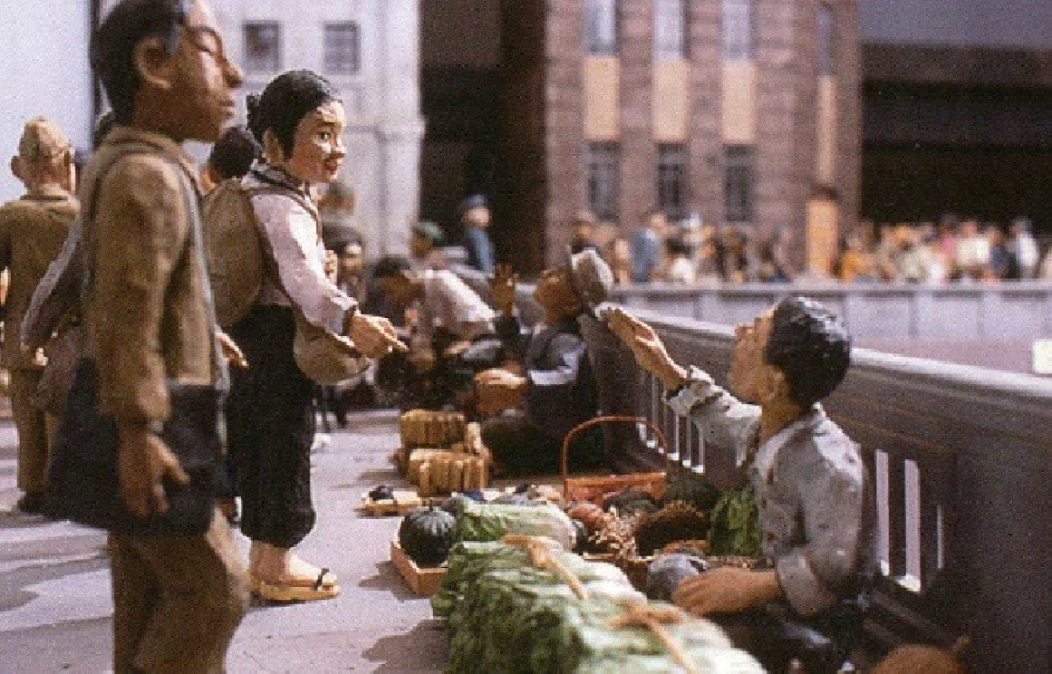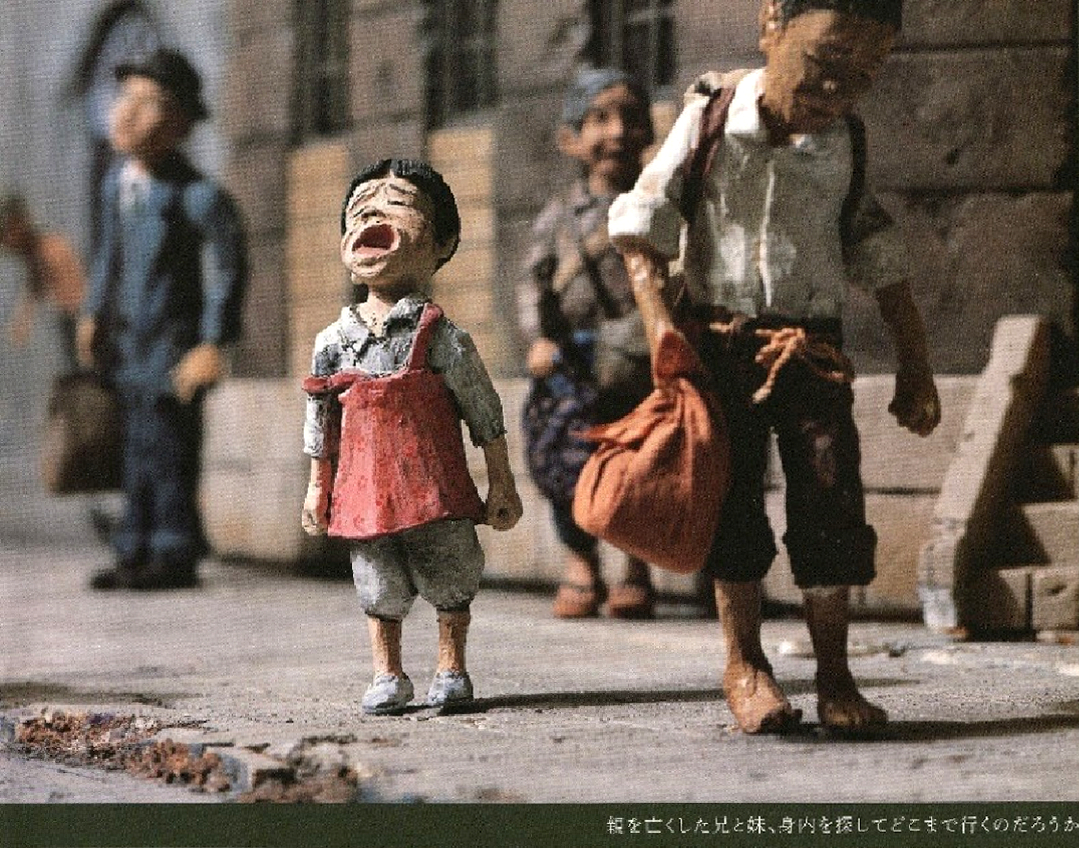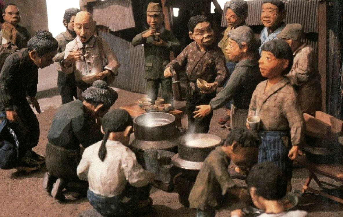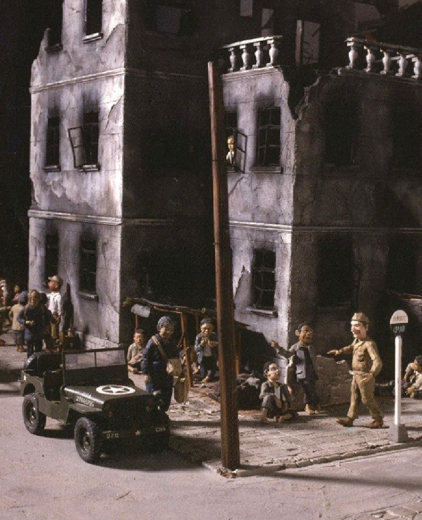 夫のジオラマは、当時の家屋や日用品なども細部までこだわって再現しており、戦後、 希望を失わずたくましく生き抜いた人々の生き生きとした姿は今にも動き出しそうなほど魅力に溢れています。
