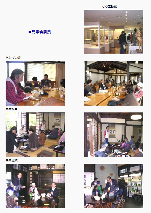 奈良町では重要文化財の今西家書院で庭を鑑賞しながら昼食を楽しみました。今西家書院は興福寺の大乗院家の坊官を努めた福智院氏の居住で今西家が譲り受けたもので室町中期の書院造りの古い遺構を残しているものです。続いて隣接の今西酒造で「春鹿」の5種類の酒(辛口)を試飲しました。その後奈良町界隈をそれぞれ散策し、最後にこれも古い漬け物屋「あしびや本舗」のティールームでひと休みして、午後4時過ぎ散会しました。
