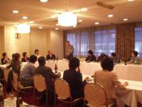 総会では支部規約の見直しが行われ、規約を会則へ変更、会員の幅を広げられるように、大阪府下出身者、及び総会にて承認された校友も会員とする議案が採決され可決しました。 また、この大阪支部ホームページは公式ホームページとして承認され、今後支部長を管理責任者として、希望者で運営されることになりました。インターネット個展については、プロジェクターを使っての説明もあり、具体的な運営方法については熱い議論が交わされました。 総会後の親睦会では、初めての方や懐かしい方も参加していただき、近況報告などが行われて、親睦を深めることができました。 <世話人 事務局 栗原 逸平>