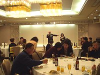 支部長藤田さんの挨拶に始まり、一年間の行事の報告、続いて支部展の新人賞(今井紀久子さん・土井栄さん・福岡雅子さん)の発表の後、表賞状が送られました。そのあとゲームに移り、世界遺産なぞなぞゲームを各テーブル1チームで楽しみ、突撃インタビュー、カラオケ(飛び入りあり)等、沸きにわいて、賑やかに、和やかな楽しい一時を皆様と共に過ごすことができました。ご協力いただき本当にありがとうございました。