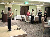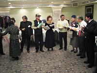 その後、前支部長の藤田さんの乾杯のご発声で和やかに新年会を開催しました。会員の大年さんの魅惑的な甘いシャンソンに聞きほれ、とび入りのカラオケで盛り上がりました。続いて新人賞の表彰状を支部長吉田さんより、井上さん、辻谷さん、山花さん(欠席)にお渡ししました。