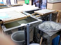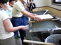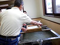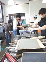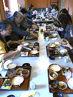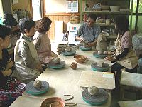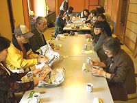その後紙漉き組はワークセンター紫香楽へ移動、お昼までの時間それぞれの体験を楽しみました。ワイワイ、ガヤガヤと童心に返って思う存分物作りを楽しみ、あっという間に時間が過ぎ、2班は陶房ごとうで合流、朝宮の山びこに移動昼食。ゆっくりと美味しいご馳走を頂きました。