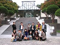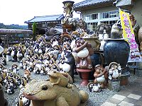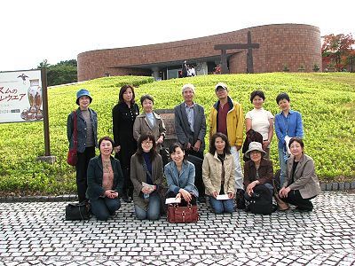 1時45分陶芸の森に向かって出発。途中、道路には陶器のお店が並び、大きな「たぬき」が私たちを歓迎してくれているように思えました。陶芸の森では、陶芸館で「ジャホニズムのテーブルウエアー」という特別展を鑑賞したりして、約45分程、色づき始めた木々を眺めながら散策を楽しみました。