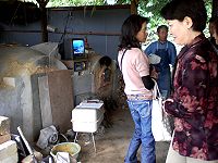 大阪を8時15分に出発。予定どうり10時に陶房ごとうに到着、全員で見学させて頂きました。丁度窯に火が入っていて、ほんの少しの時間でしたが窯の入り口を開けてもらい、中の様子を見ることができました。