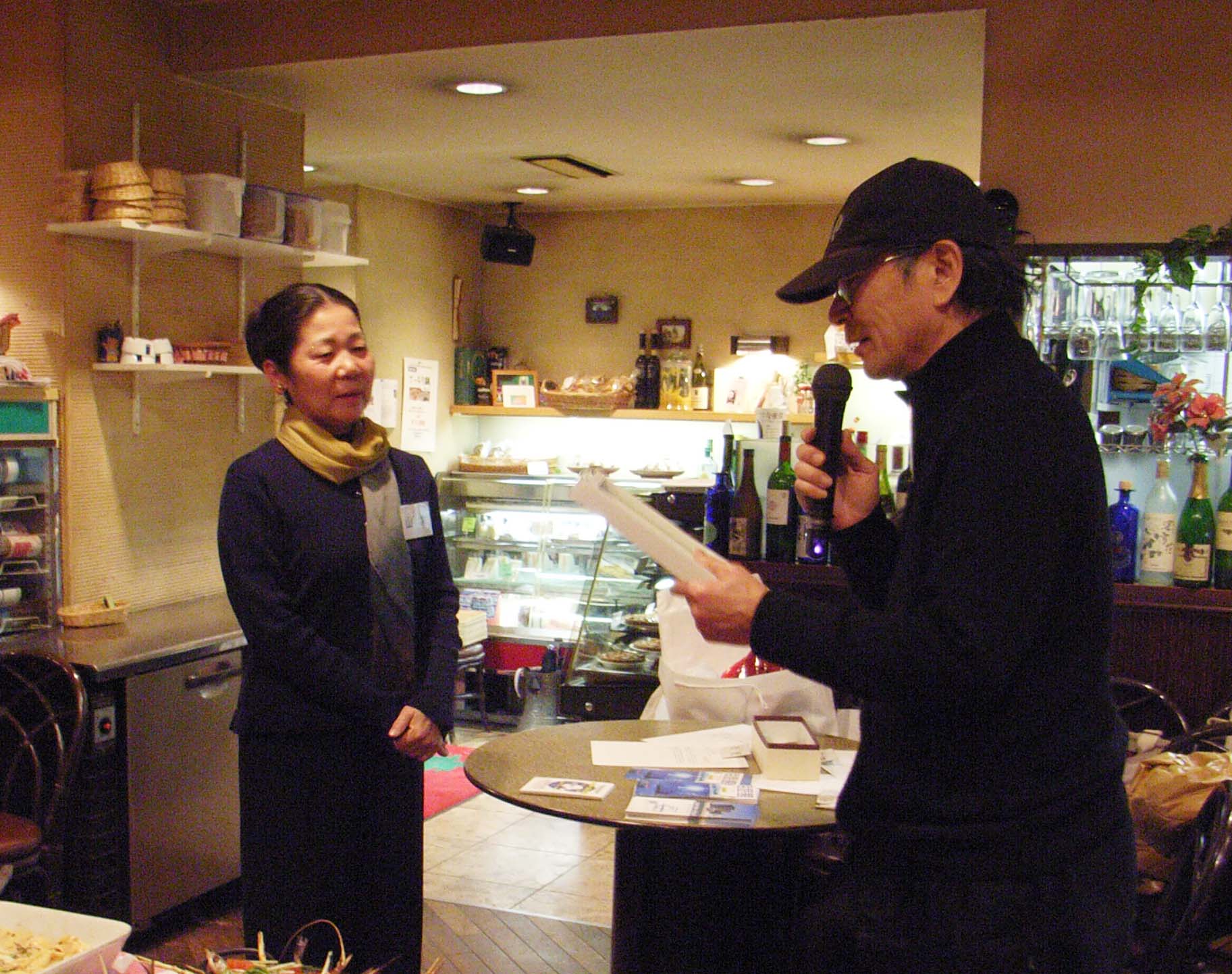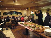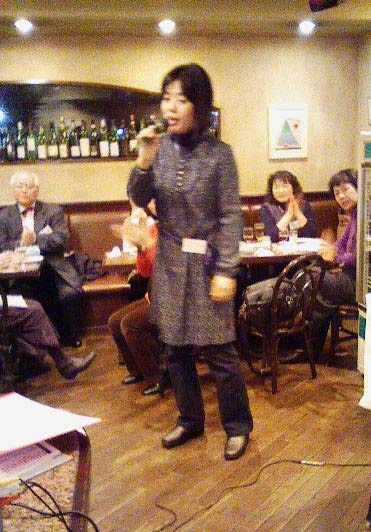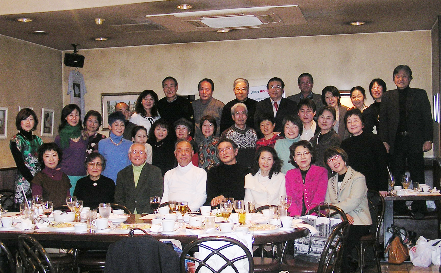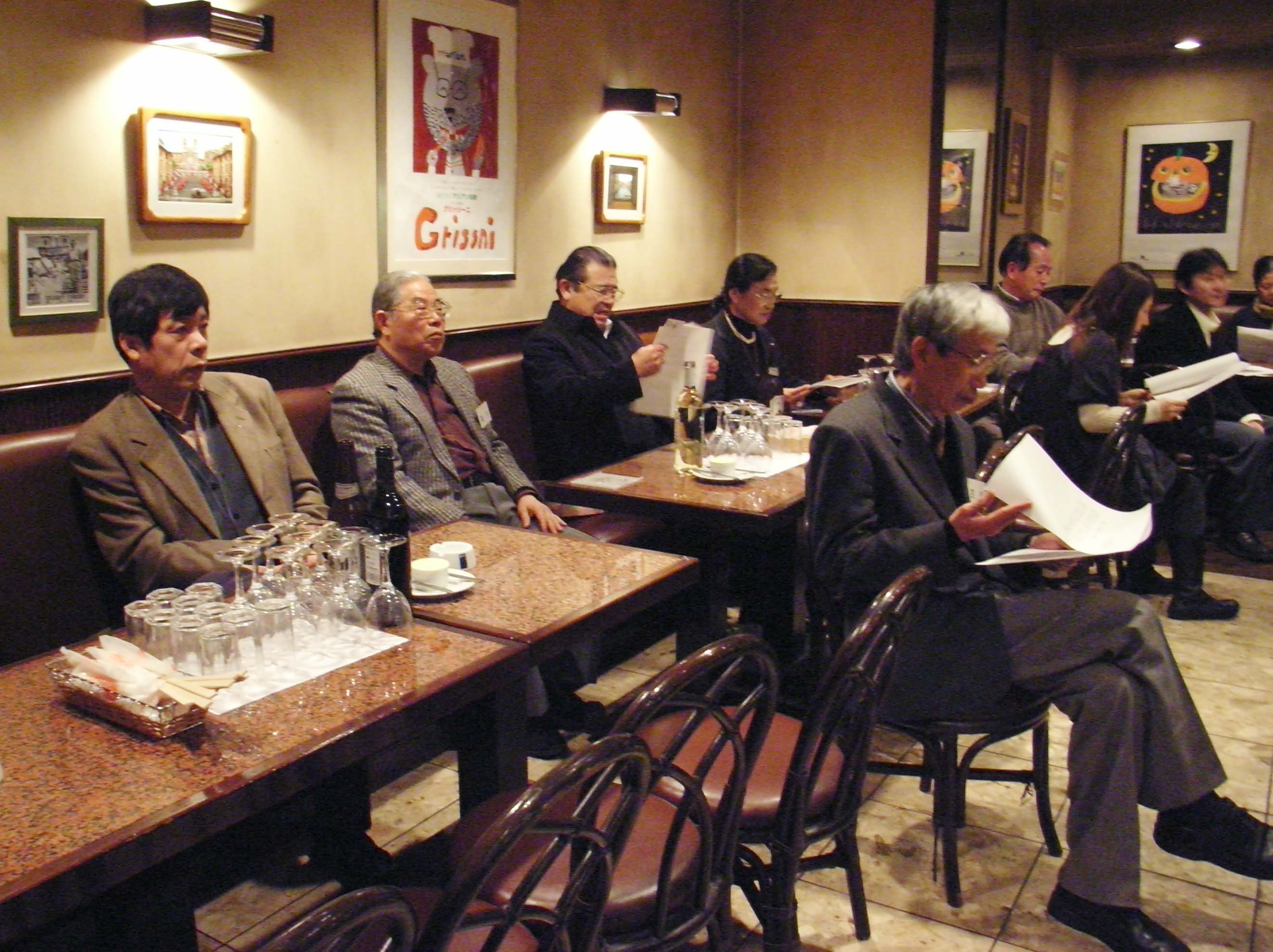 寒い雨の夜にもかかわらず32名の皆様に参加して頂きました。 支部長の挨拶におきまして、今年10月武蔵野美術大学主催による地域ホーラム「アート&デザイン2008ー大阪」の開催が決定したとの報告があり、大阪支部全員で協力してアートフォーラムを成功さ せましょう!との全員一致の大きな盛り上がりから新年会がスタートしました。 つづいて、昨年の支部展での新人賞の授賞式があり本部から、広瀬さん、伊佐地さん、駒井さん(欠席)3人の方へ新人賞が授与されました。また、大阪支部会員の方々の為にご尽力くださった、岸野さん、山木さんに支部長より感謝状と記念品の贈呈がありました。 会員でシャンソン歌手の大年さんの歌を楽しみ、また美味しい食事と懇談、アドリブいっぱいのスピーチ昨年活躍された厳さんのDVDでの活動報告、プレゼント交換、などなど、楽しい時間と空間を共有できたステキな新年会になりました。皆様有難うございました。今年も宜しくお願いします。 <新年会係り 寺島 真里子>