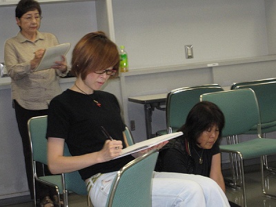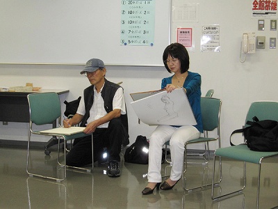 参加された皆さんは真剣に描いておられました。全体に良い緊張感がありました。「こちらに来るまでは描く気力がなかったけど、モデルさんを描くうちに、どんどんやる気が増してきました。」という感想をもらいました。終了時には、皆さんから自然にモデルさんに拍手がおこりました。 当方、入会2年目の新米で、支部長、事務局長をはじめ役員の方々と先輩の方々にアドバイスやご協力を頂きました。感謝しています。