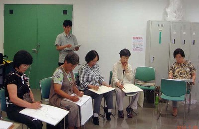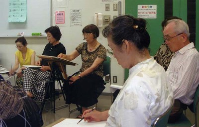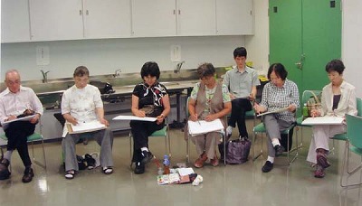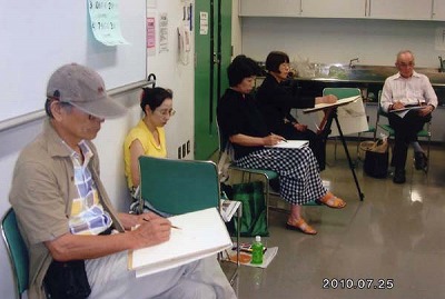2010年度の第一回デッサン会は、7月25日(日)難波市民学習センターのアトリエで裸婦のデッサン・クロッキーを行いました。 皆さんのご協力で昨年度よりも多く、20名の方に参加していただきました。