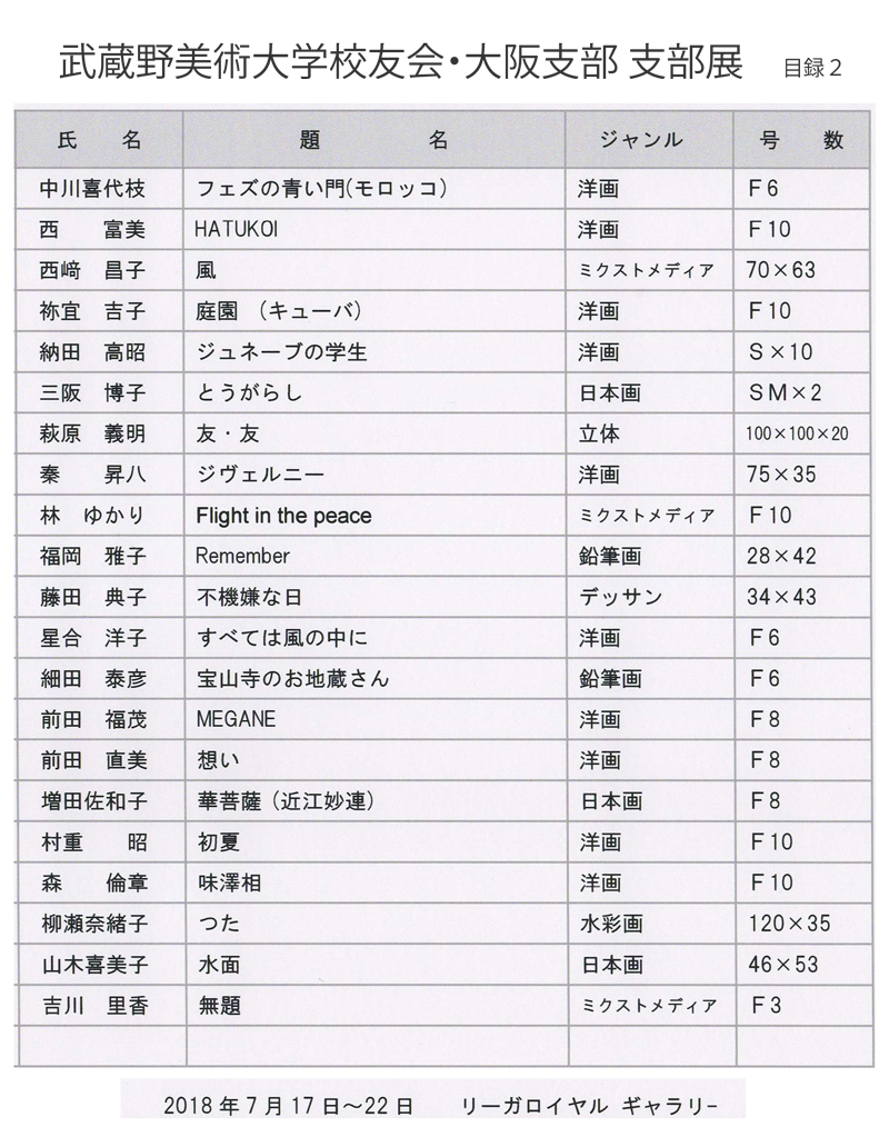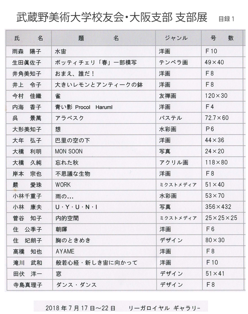 武蔵野美術大学校友会・大阪支部 支部展 目録
