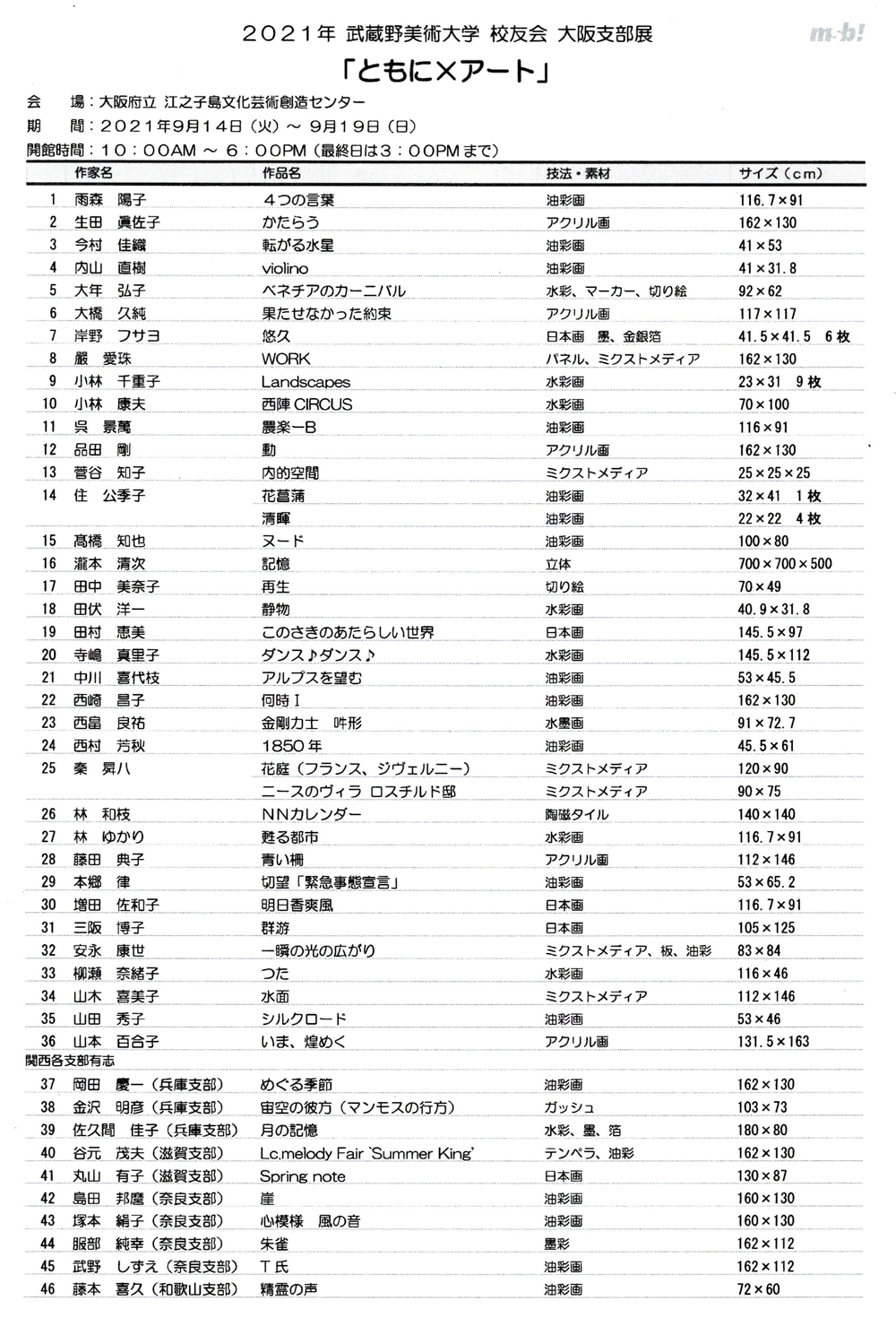 支部展 作品一覧目録