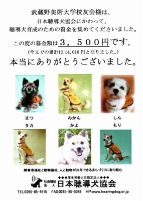 会場に日本聴導犬協会とユニセフの募金箱を置き微力ながら社会貢献ができました。