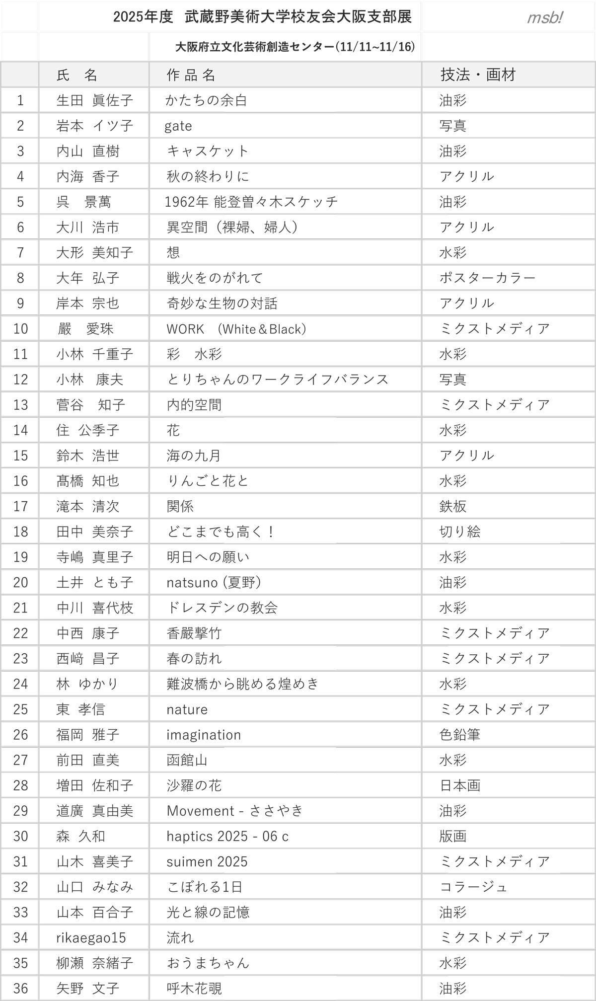 支部展 作品一覧目録