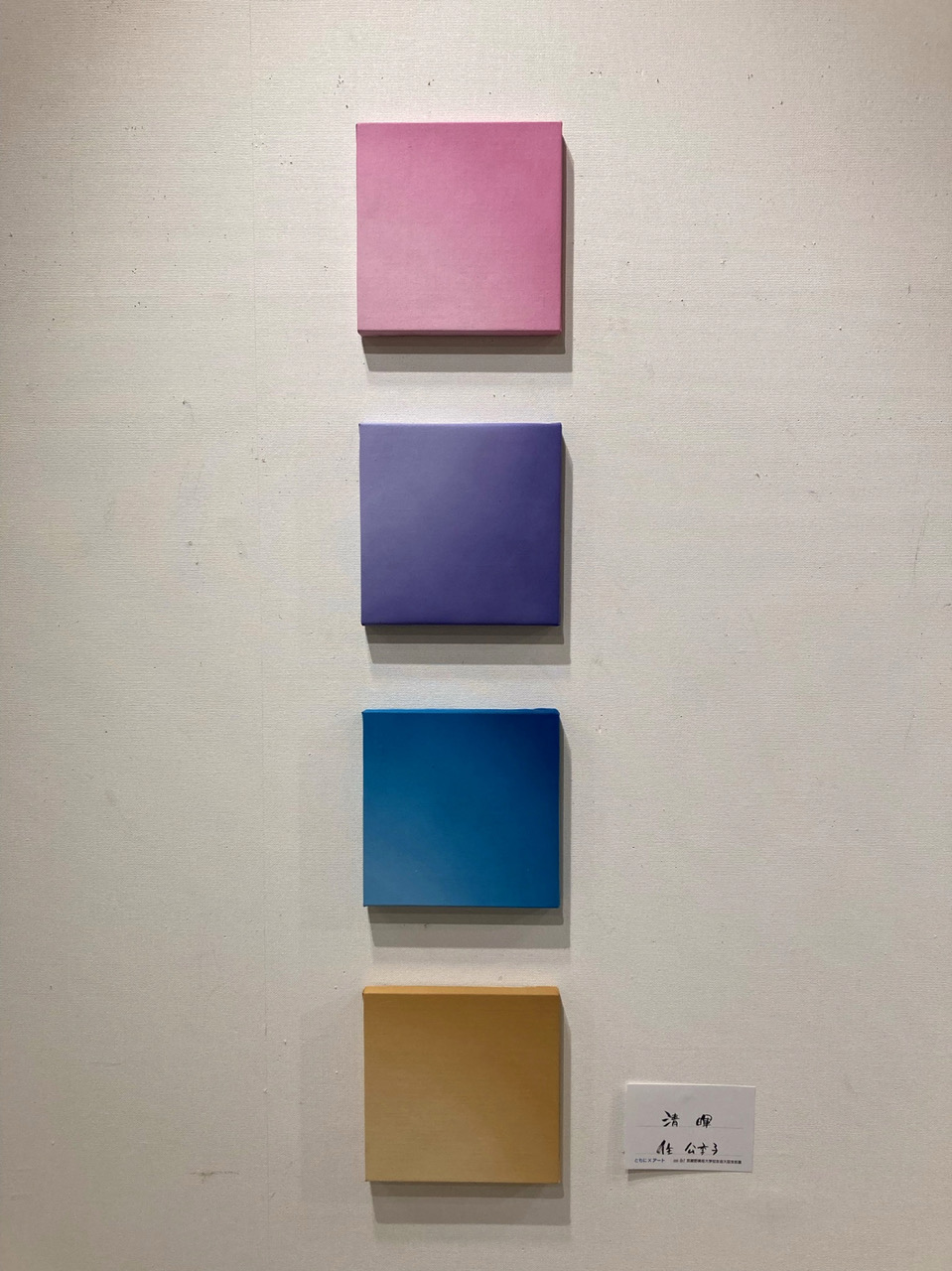 | 2016年 | 株式会社オリバー「医療と福祉の展示会 2016」 大阪・広島・福岡の会場を巡廻。 油彩画150号、4連作展示 現在 同社福岡支店 ショールームに展示 収蔵 |