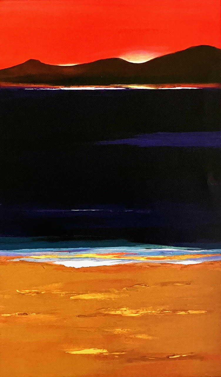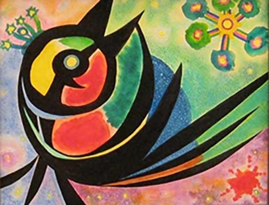 私は人生の指針として、仏教の根本原理(1.諸行無常 2.諸法無我 3.涅槃寂静)を認識し、「空の理法」を追求するため、般若心経が説く「色即是空」(宇宙の一切のものの真実の相(すがた)は全て空(くう)であり、空がもろもろの形あるものを構成している)を根本思想とし、“心のやすらぎ”をテーマに絵の制作に取り組んでいます。